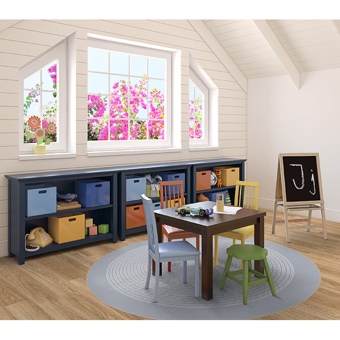 Create a comfortable classroom atmosphere with our Like Home™ Rug. Made with faux-braided material and designed for maximum comfort, this carpet will help students feel at ease as they learn and develop. 5'4" Round, Silver