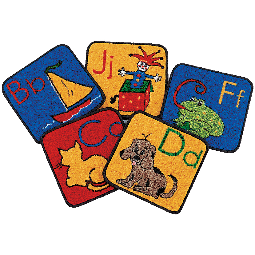 The ABC Phonic Rug Squares have playful images to reinforce letter recognition and phonic skills. Colors and patterns are designed to be fun for children. Treated with "Carpet Guard" which provides soil and stain protection in the classroom.