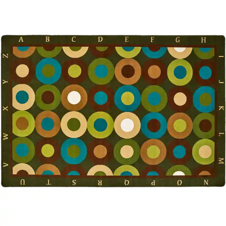Alphabet Calming Circles Classroom Rug, Nature's Colors, Rectangle 6' x 9'