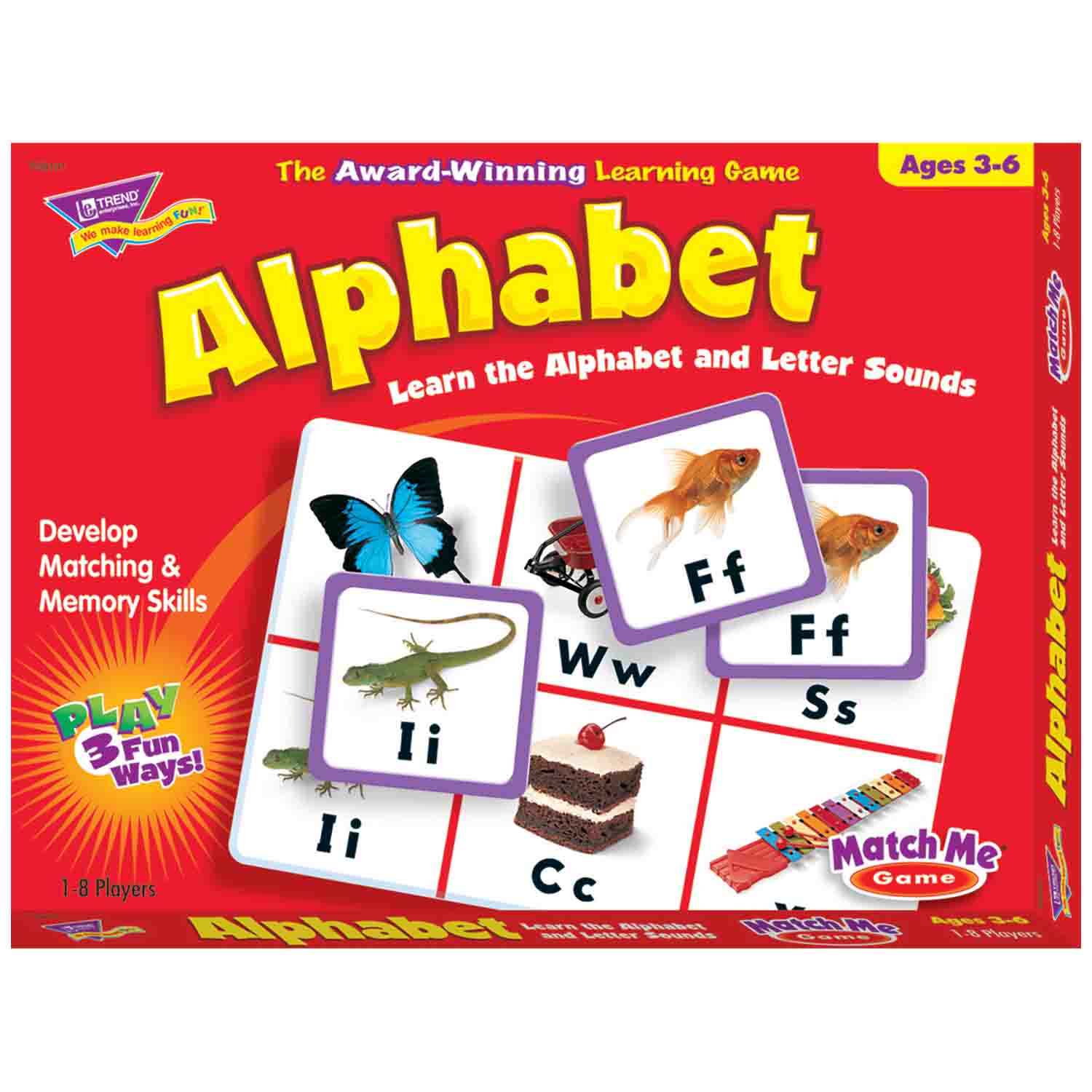 Three ways to play! Players practice alphabet skills as they match uppercase and lowercase letters to photographs of real-life objects that provide beginning letter sound cues. Two-sided game boards and playing cards are coated for durability.