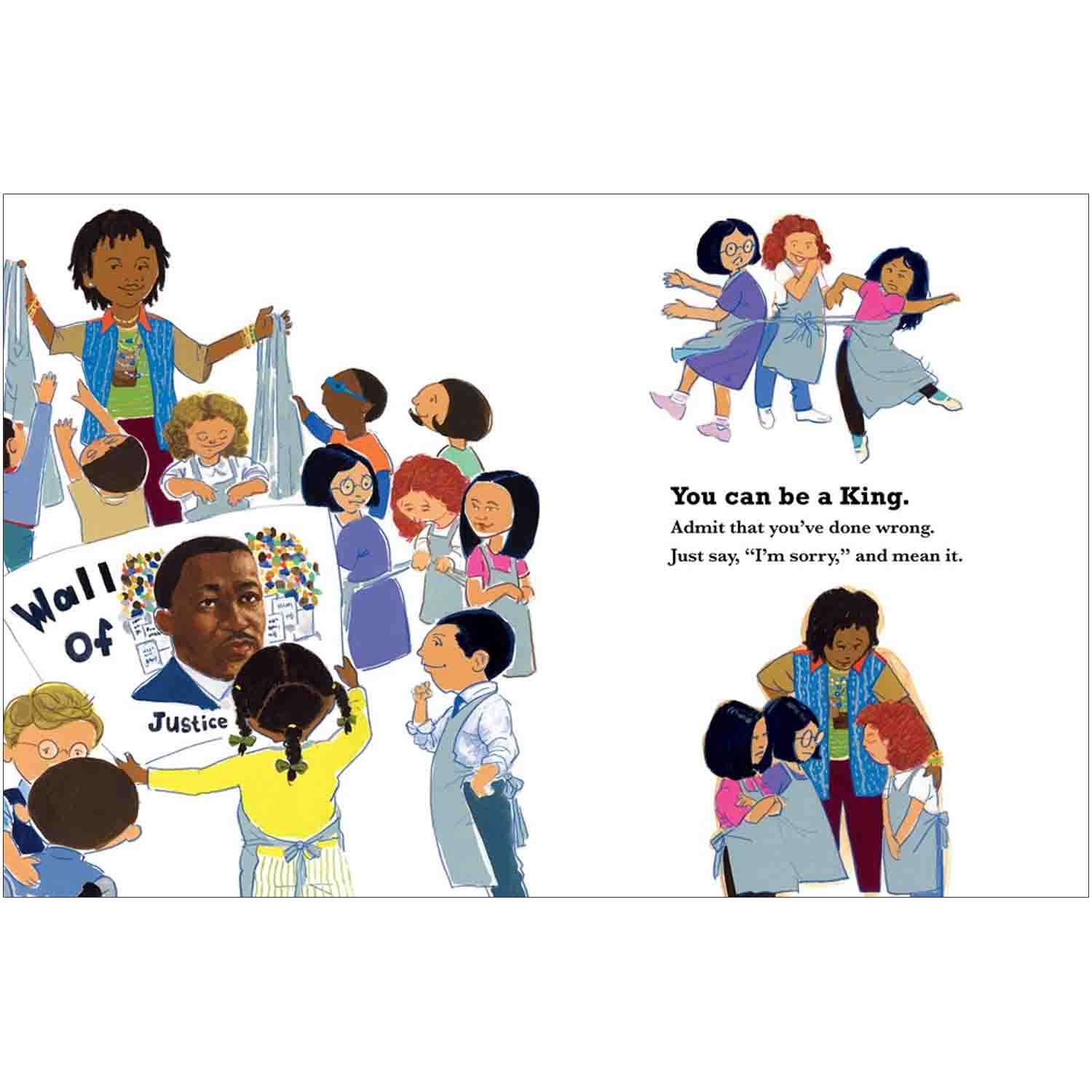 Featuring a dual narrative of the key moments of Dr. King's life alongside a modern class as the students learn about him, Carole Weatherford's poetic text encapsulates the moments that readers today can reenact in their own lives. See a class of young students as they begin a school project inspired by Dr. Martin Luther King Jr. and learn to follow his example, as he dealt with adversity and never lost hope that a future of equality and justice would soon be a reality. As times change, Dr. King's example remains, encouraging a new generation of children to take charge and change the world . . . to be a King.
