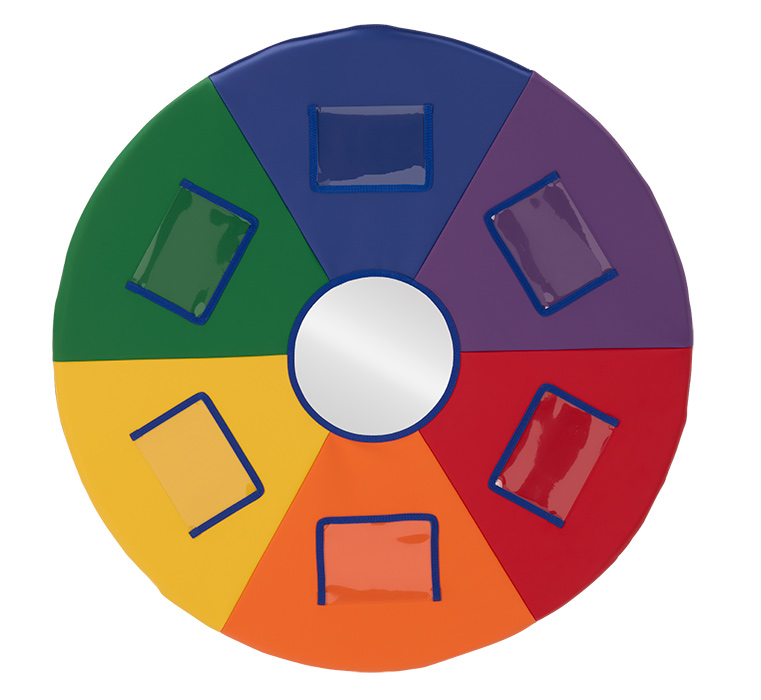 The Becker's Peek & Crawl Circle Mat creates a cozy play space for infants and young toddlers. With six clear pockets for visual stimulation and a safe mirror for sensory development, this mat is perfect for classroom or play area use. Ideal for quiet play and discovery in both mobile and non-mobile infants.