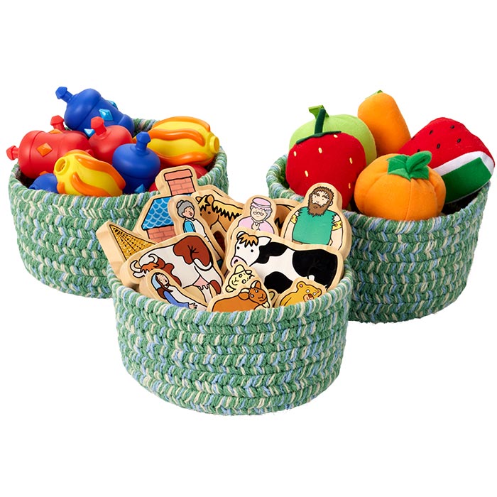 Misty Bay Baskets are the perfect holding baskets for small objects. Made from soft chenille and nylon fibers. We guarantee that your toddlers will think of many uses for them!