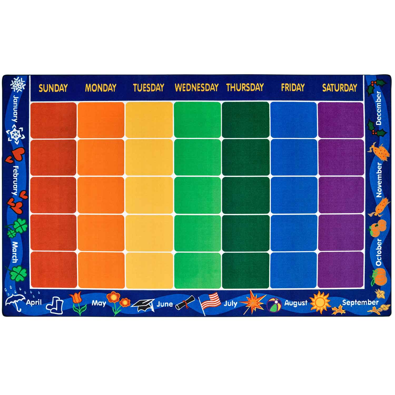 What day is it today? The Calendar Classroom Rug from Carpets for Kids is perfect with helping young students recognize days of the week, months of the year and seasonal symbols. Seating is simple with large colorful blocks. This classroom carpet is great for number and letter recognition.