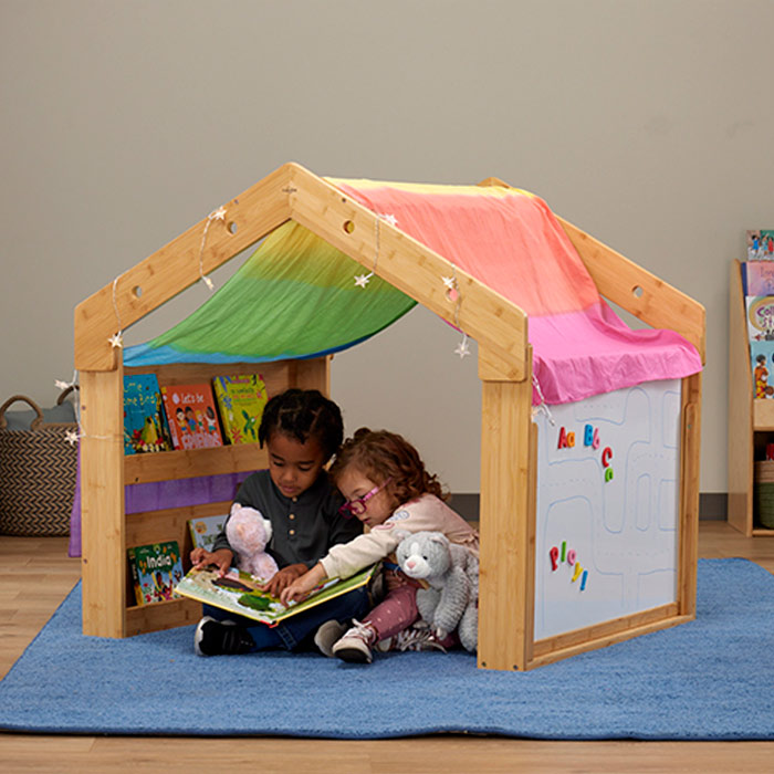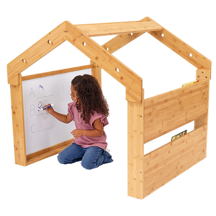 Create a tranquil oasis in your classroom with the Calming Cabin! Constructed from bamboo, this inviting space features everything children need to feel calm and content. From the interior bookshelf to the removable double-sided magnetic whiteboard, plus a designated area for attaching blankets or lights, it’s the perfect spot for students to unwind. And with its open design, teachers can easily keep an eye on the action inside.