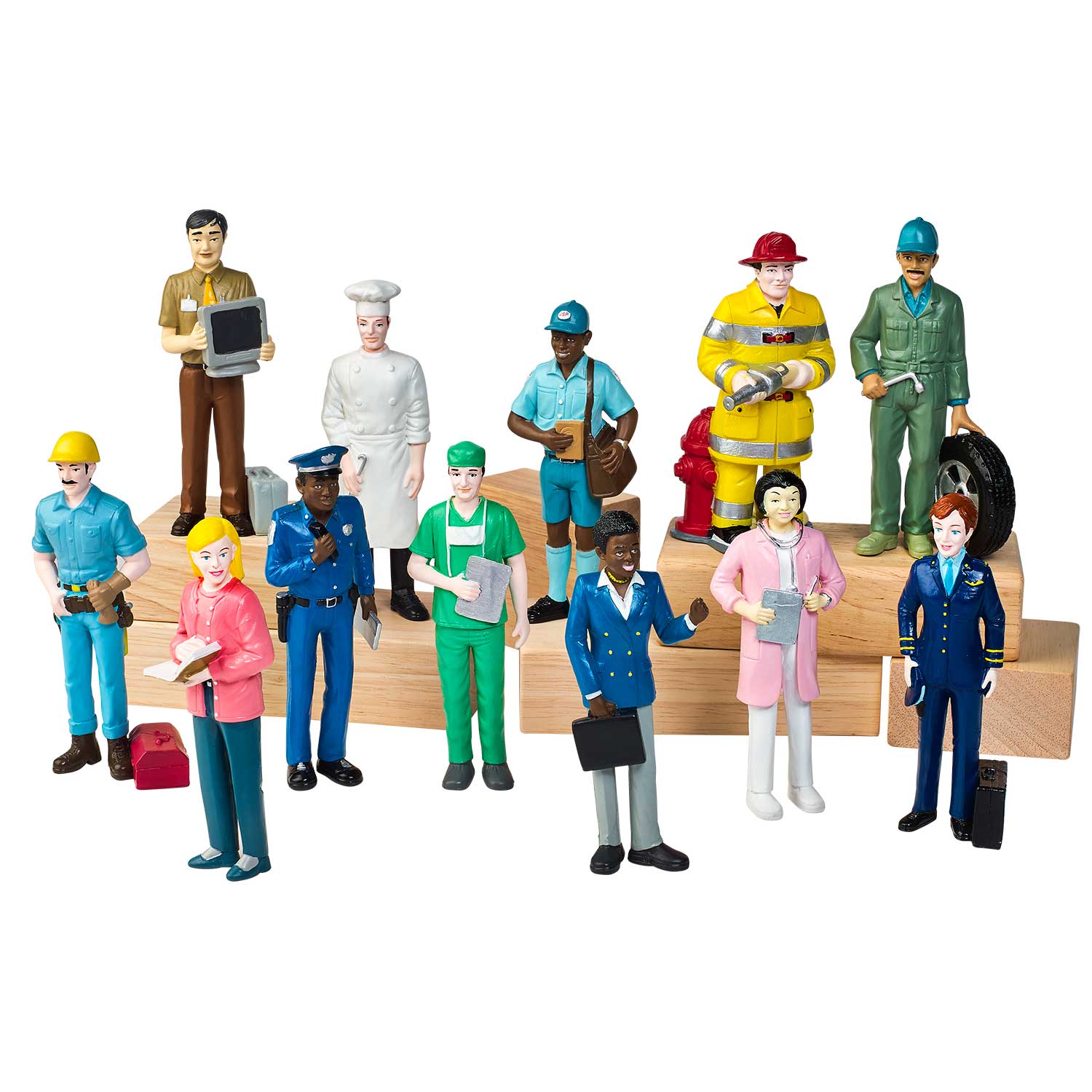 These freestanding, multicultural career figures are great to have on hand as block play accessories and conversation starters when you talk about jobs and community workers. Lots of conversation will be stimulated by the realistic details showing the "tools" of each worker's trade.