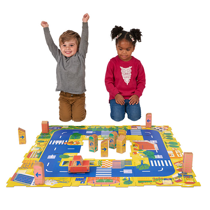 - Includes 2 cars, 22 blocks, city map & activity cards
