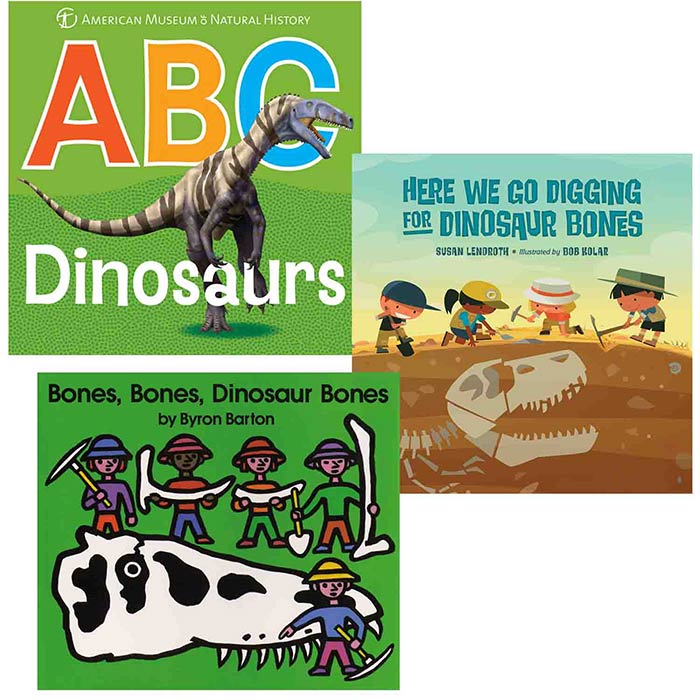 Dinosaurs live on in our imaginations! Set consists of 3 titles: Bones, Bones, Dinosaur Bones, ABC Dinosaurs and Here We Go Digging for Dinosaur Bones.