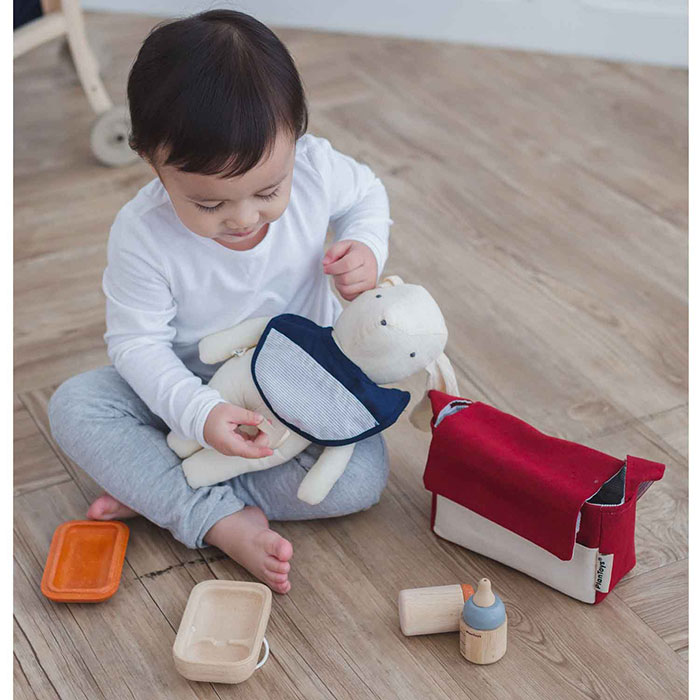 It’s feeding time! The Doll Feeding Set helps children to develop a sense of love and care through role-play. Includes a food-storage container, spoon, bib, water bottle and feeding bottle, packed neatly in baby's bag.