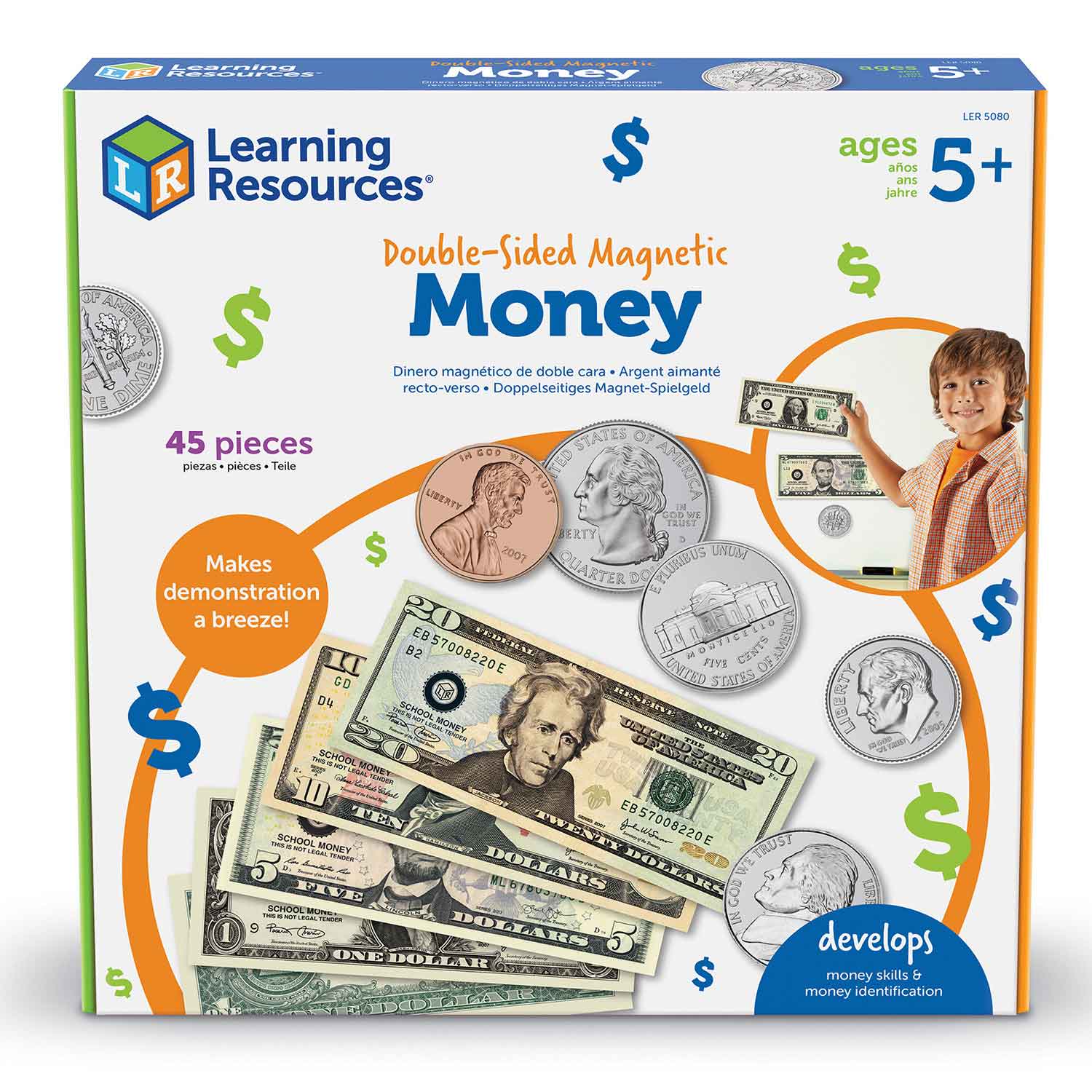 Big money! Detailed money magnets feature updated designs on both front and back. Stick to any magnetic surface for engaging money lessons targeting coin identification, counting and making change.