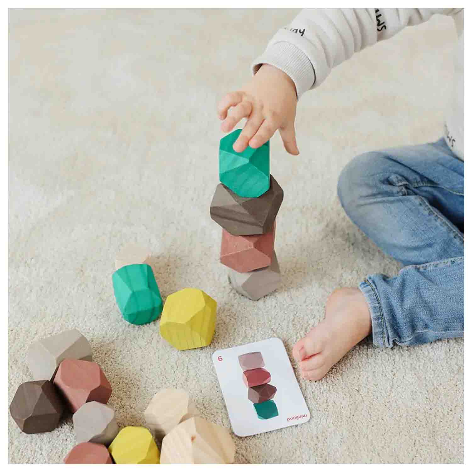 These wooden stones are made of different shapes and colors simulating the appearance of gem stones. Great for stacking and developing fine motor skills.
