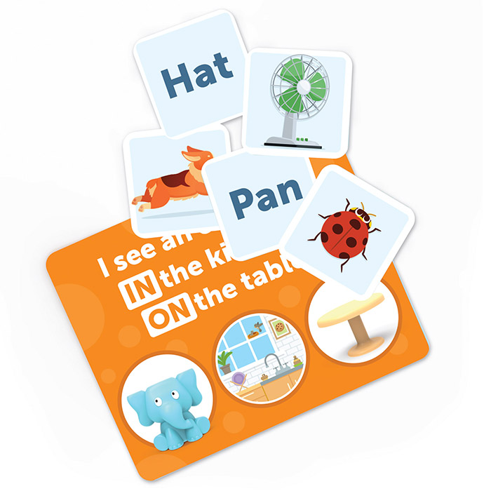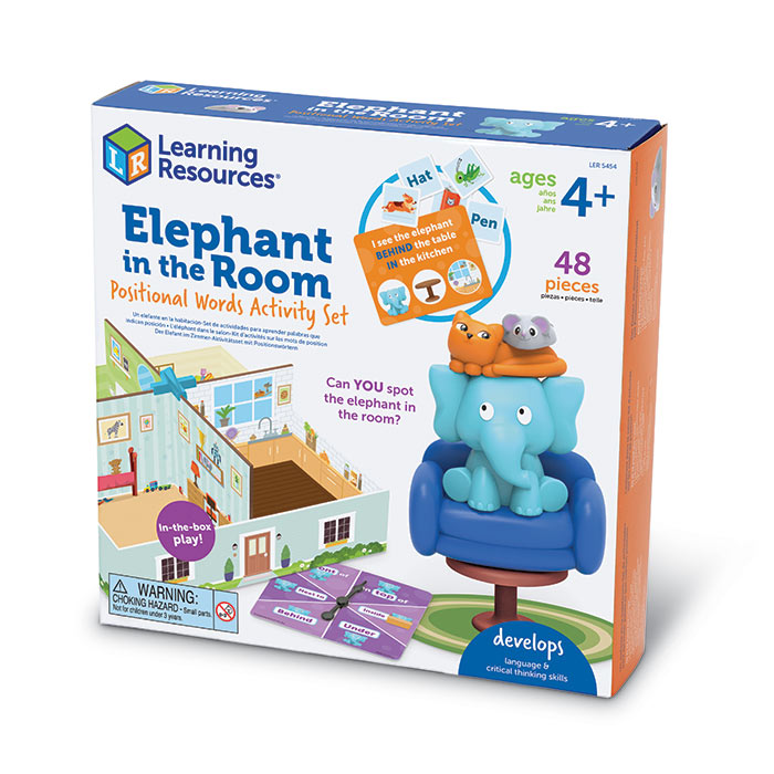 The Elephant in the Room Positional Word Activity Set is a fun way to learn positional words. Children draw a challenge card, twirl the spinner, and follow the directions to position the animal figures in one of four rooms. The guide includes activities that help develop skills in positional words, multi-step directions, spatial awareness, the alphabet and more. With removable slotted walls for out-of-the-box play, children can learn words like in, on, under, and more as they place the animals and objects.
