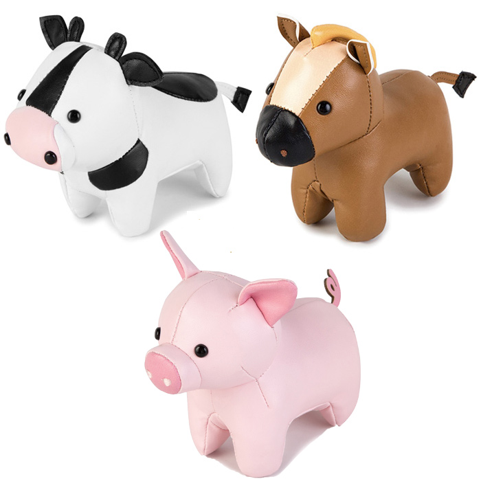 Introduce babies to whimsical farm animals with this collection of three soft rattles that are the perfect size for easy grasping and holding. Rattles are soft to the touch with a bell inside. Farm set includes a tiny cow, tiny pig, and tiny horse. Introduce early fine motor and sensory skills as the infant grasps and shakes the tiny animals.
