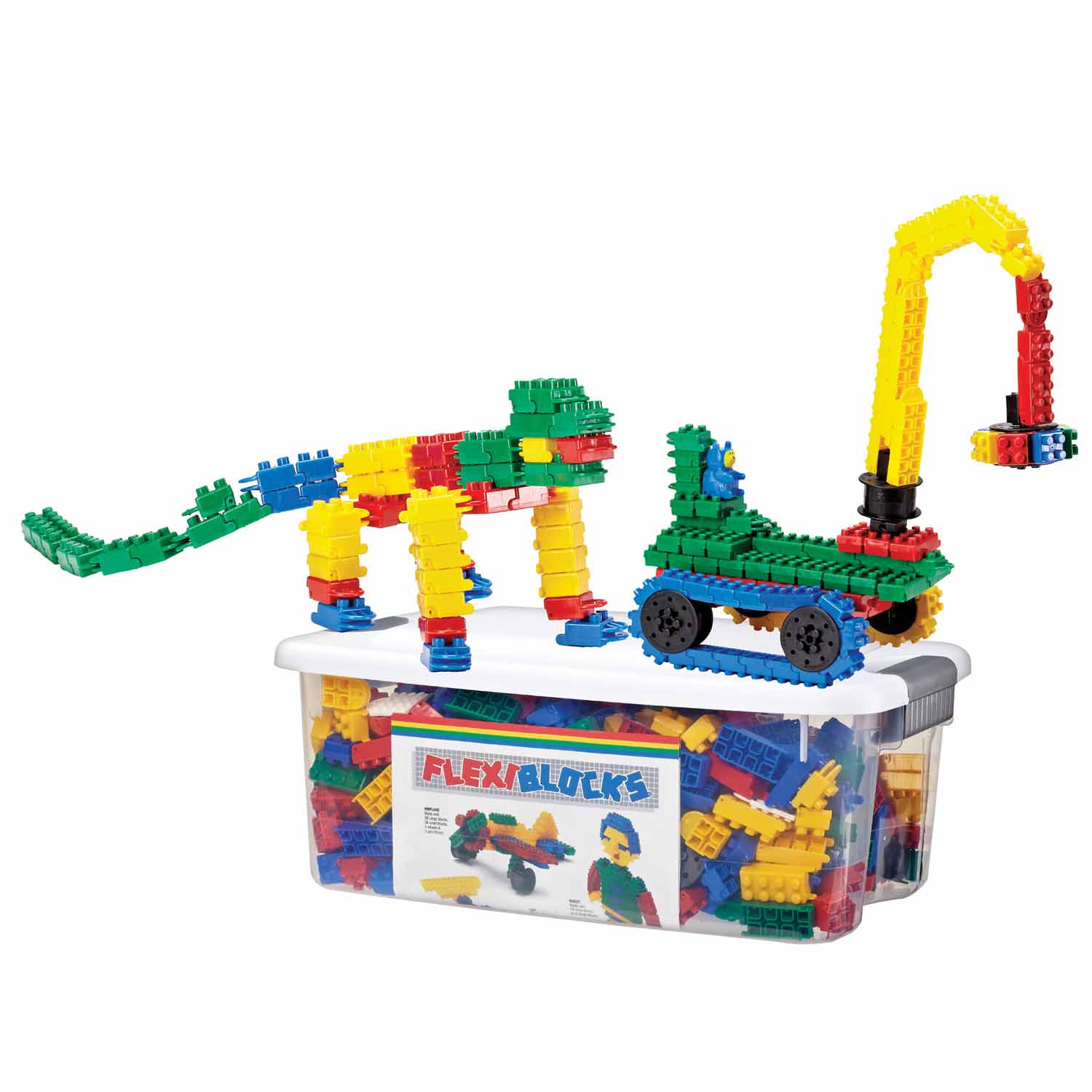 - 720 pieces (516 Flexiblocks®, 160 Flexiswivels®, 12 Flexilinks®, 8 Flexibears®, 12 Flexiwheels®, 12 Axle Blocks® and storage bin)