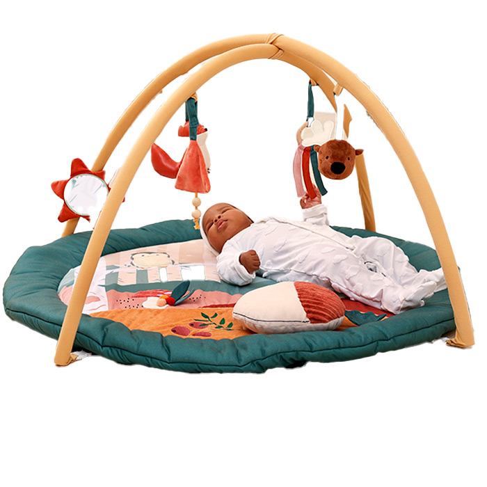 The Forest Activity Mat is designed to stimulate babies' senses. This playmat features ten engaging activities that promote tactile and sensory skill development. Watch as little ones interact with various textures, creatures, and colors. It also includes a supportive pillow for tummy time.