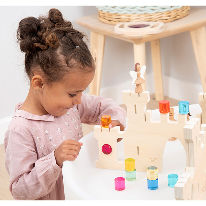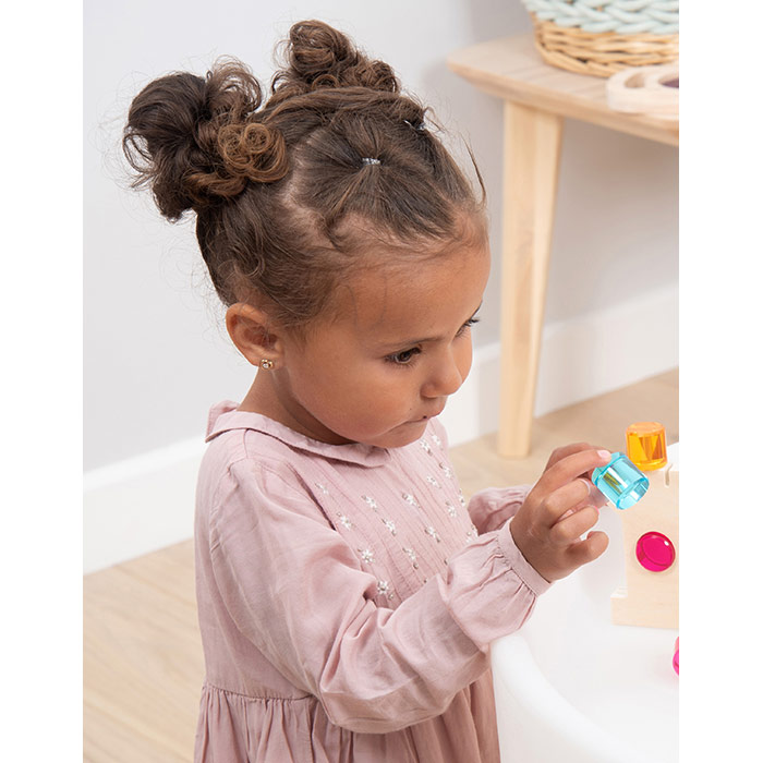 Add a touch of magic to sensory play with Gem Circles. These solid acrylic circles come in crystal colors, ideal for mixing, stacking, and balancing. Let children explore color and light by placing them on a light panel or in front of a window, creating mesmerizing shadows and endless possibilities.