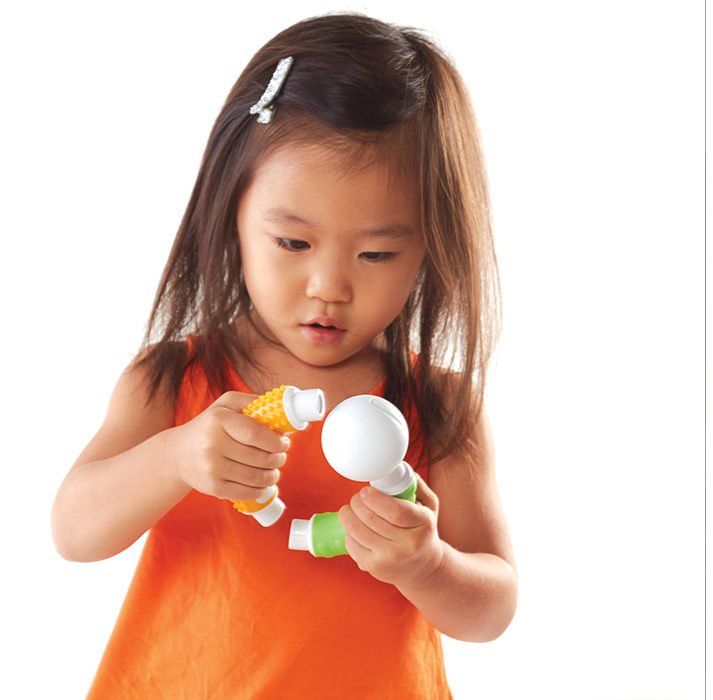 Introduce young builders to curved shapes inspired by nature with the STEM Grippies Curves. The colorful curved rods with secure magnetic ends encourage magnetic and tactile exploration. The subtle faces imprinted on the connector pieces encourage creative play and expanded language. The tactile, soft-touch pieces make Grippies Curves easy to hold and manipulate for successful play experiences. Great for toddlers and preschool-age children.