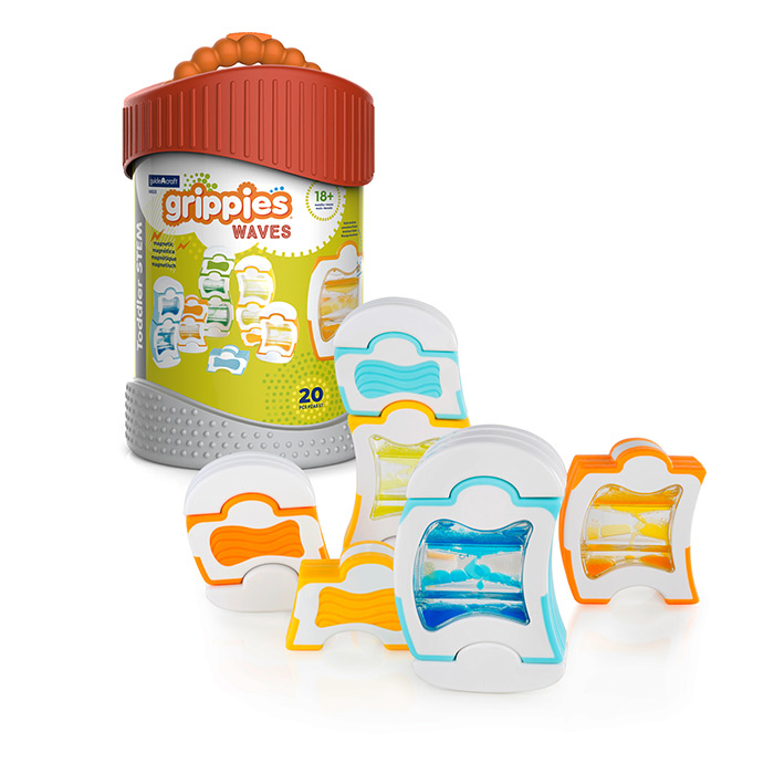 These magnetic building pieces feature wave formations and soft-colored liquids that bring a calming and mesmerizing element to playtime. Perfect for little hands, these tactile grips are easy to hold and encourage imaginative play with fluid figures that dance and balance.