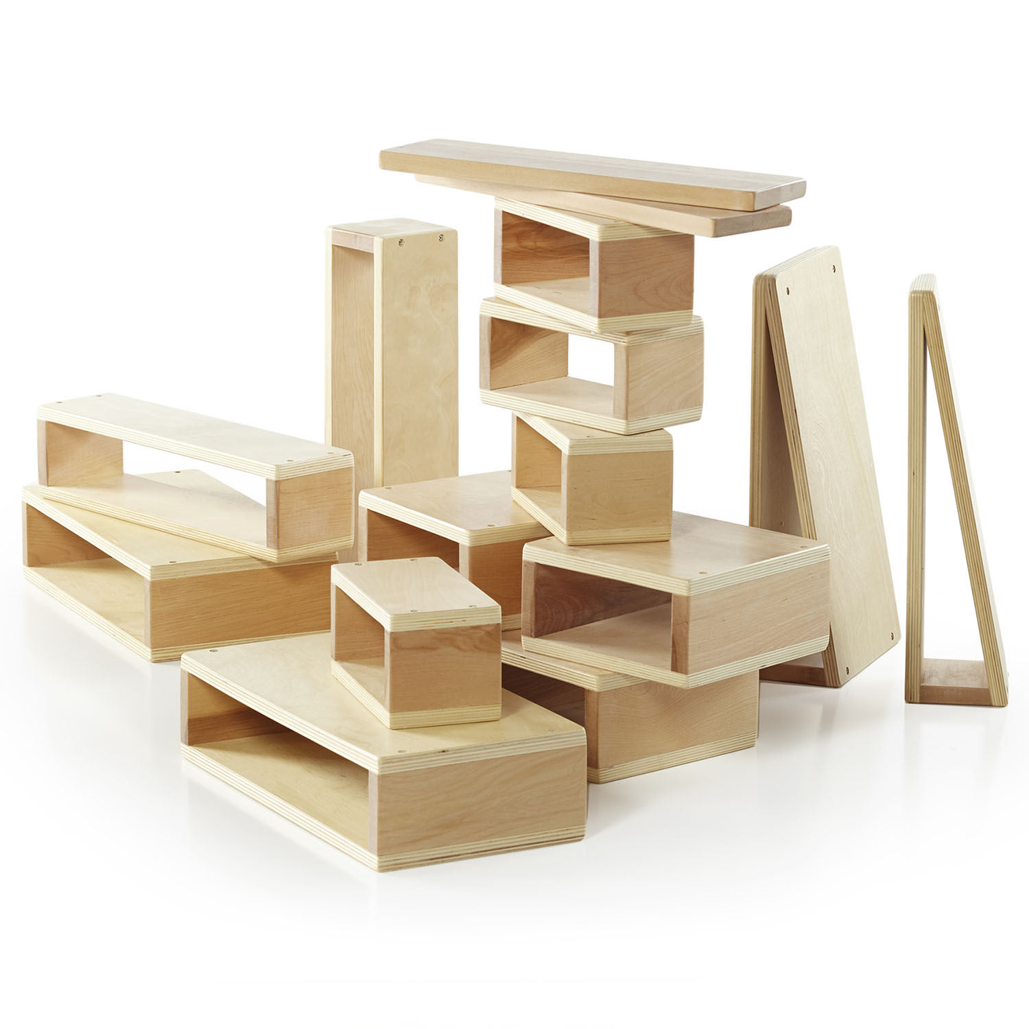 Watch children act 'big' and 'proud' as they carry around these oversized blocks. Great for building forts, castles, and imaginative structures. Each unit is constructed of birch hardwood. Edges are permanently glued - no protruding nails. Crafted with a smooth natural finish and rounded edges for added safety.