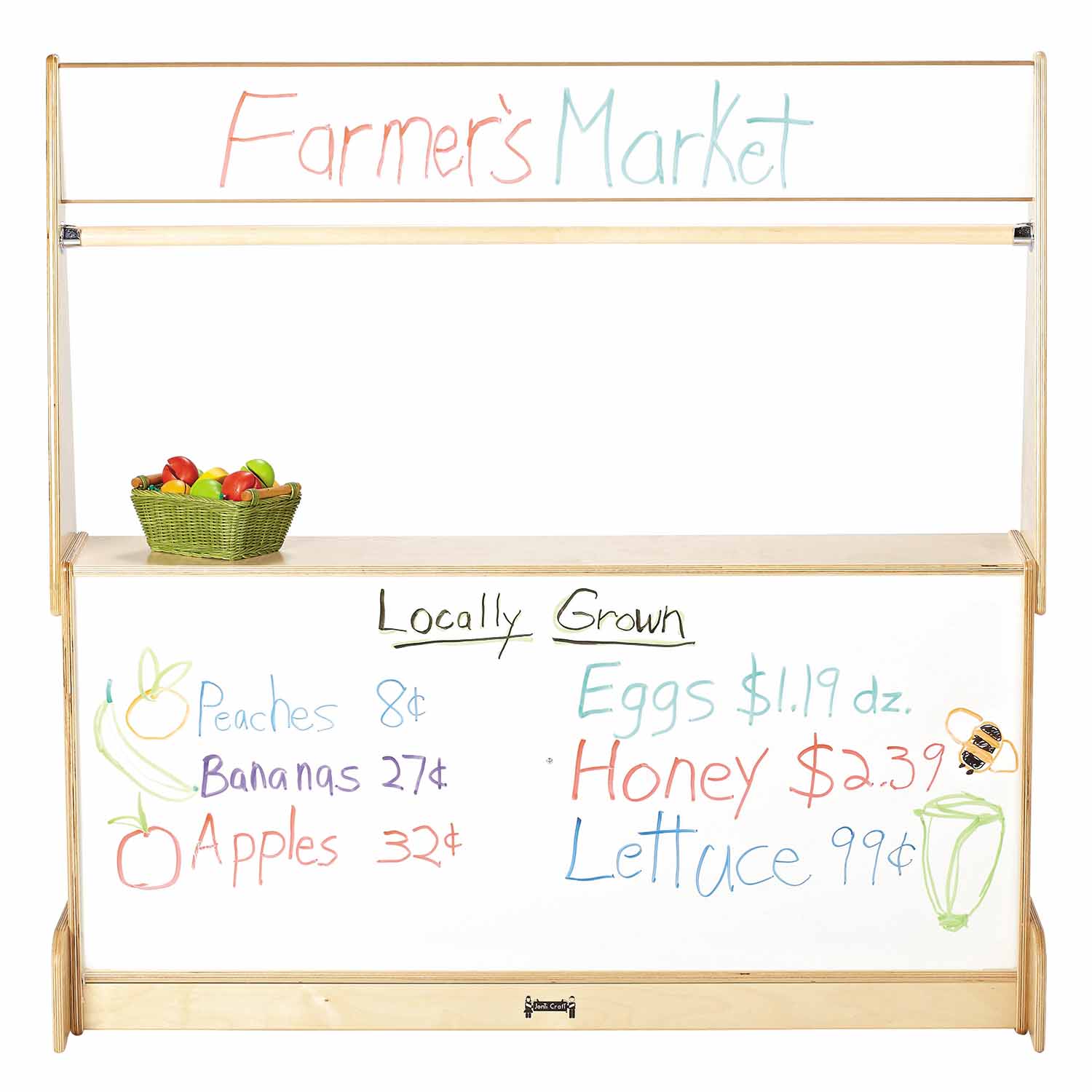 A stage, a store, a drive-up window-this Imagination Station has it all for your puppet theater needs! Shelves for puppet storage. Write-n-Wipe or Flannel fronts. Curtain rods included, optional curtains sold separately.