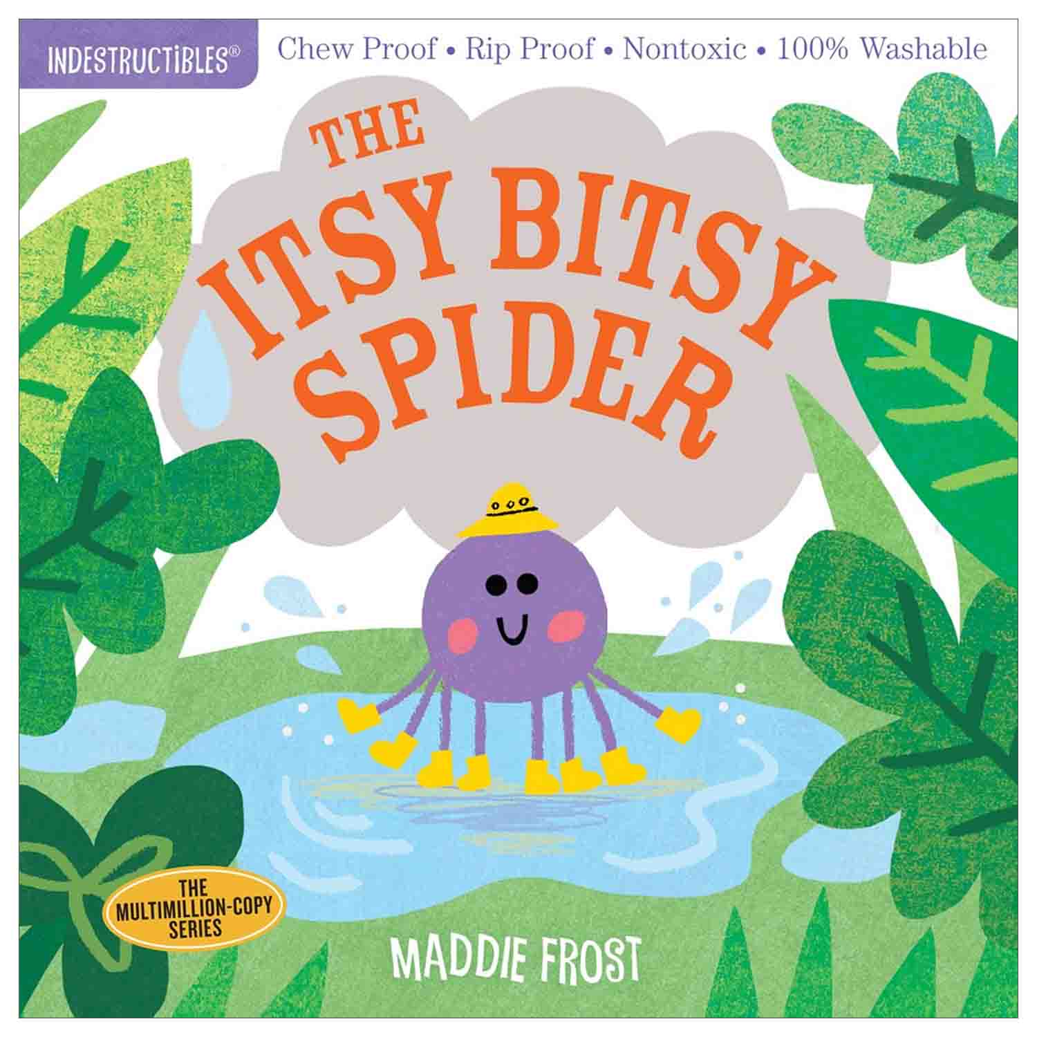 The Itsy Bitsy Spider features a small arachnid that shows the power of perseverance. The book introduces babies to a favorite song and the concepts of rhythm and rhyme. Indestructibles are waterproof, impossible to tear, and easily washable.