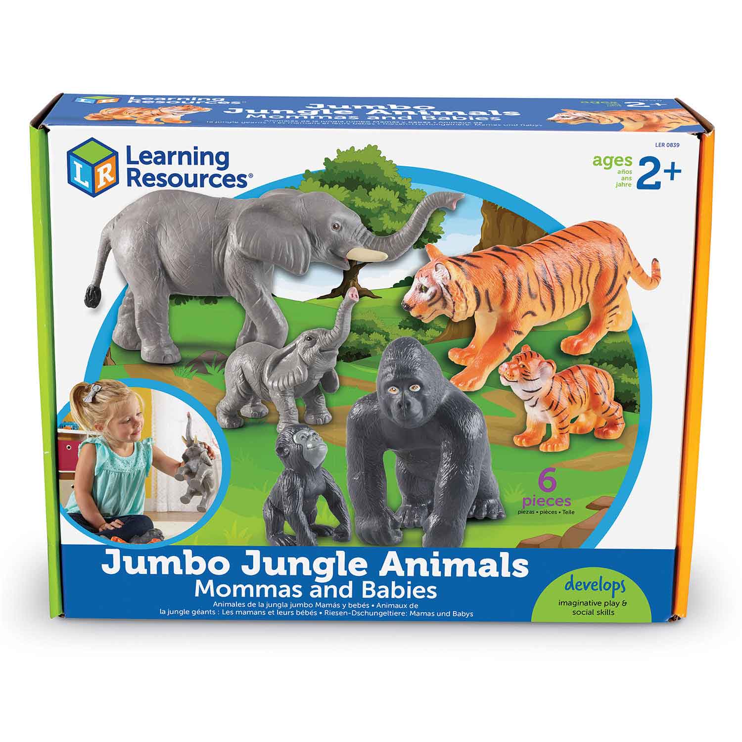 These jumbo jungle animals stimulate imagination and conversation. Talk about how moms care for their young and learn the names of the animal babies. Durable figures make great block and play props, too!