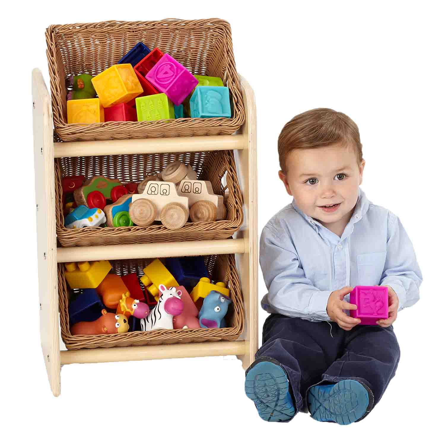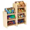 These great looking shelving units can fit anywhere and help keep your learning centers organized. The attractive and durable plastic baskets are removable and provide ample storage for your manipulatives, dramatic play props, art supplies, and more!