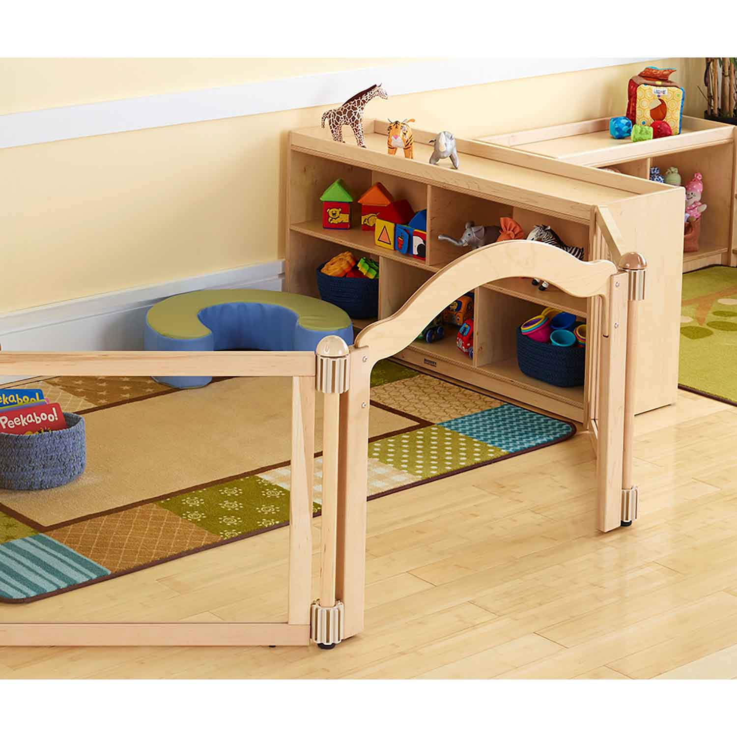 Archway provides a clubhouse feel for young children. The opening is 26" tall and 31" wide. No threshold. Connect to T-Height Hubs (24" high).