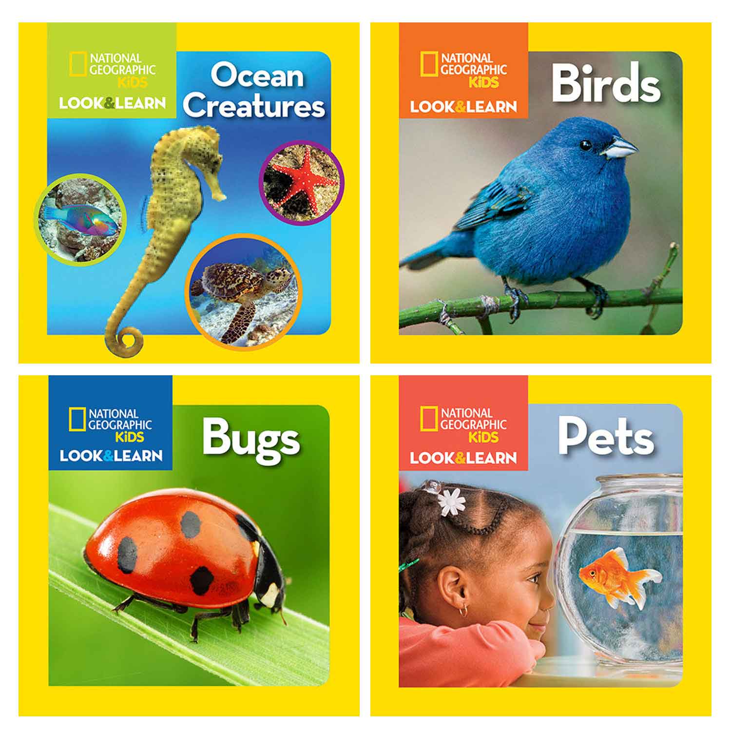 These National Geographic Look & Learn books introduce children to a subject on one spread and then show it in a real-life context on the next. Each book introduces important skills such as naming, sorting, rhyming, counting, matching, and science concepts with engaging content and activities.