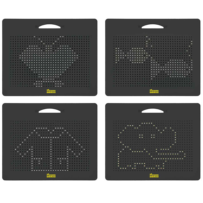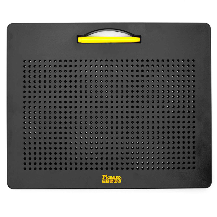 Draw, write, trace, and more! A powerful magnetic pen tip attracts encased metal balls to the small holes on the surface of the grid. Features a detachable pen and built-in back stand.