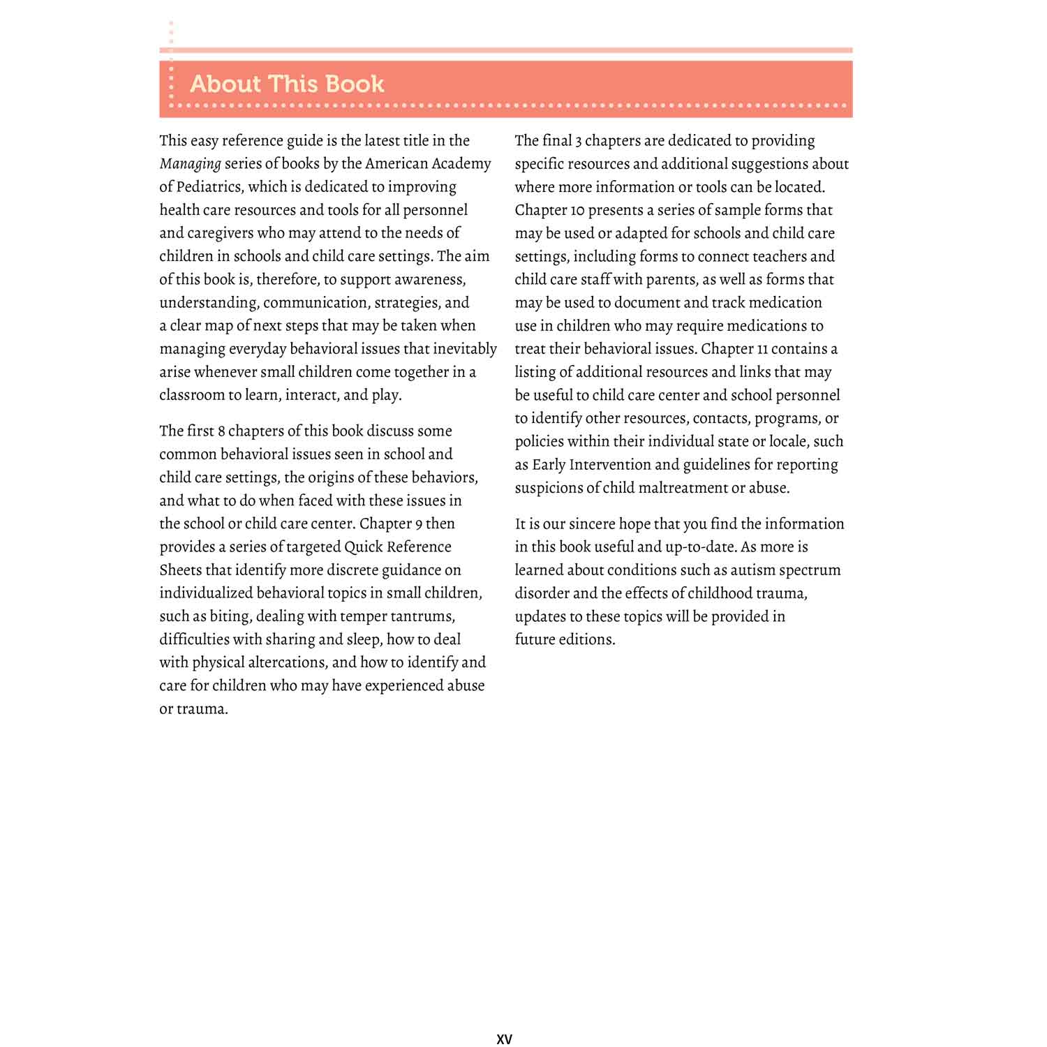 This comprehensive reference guide for child care directors, teachers, and caregivers provides essential information on managing emotional and behavioral issues covering many common concerns as well as more intense issues including toxic stress, adverse childhood experiences, and how to help children who have undergone traumatic experiences. The book contains quick reference sheets, sample forms and informative documents to support your work with young children.