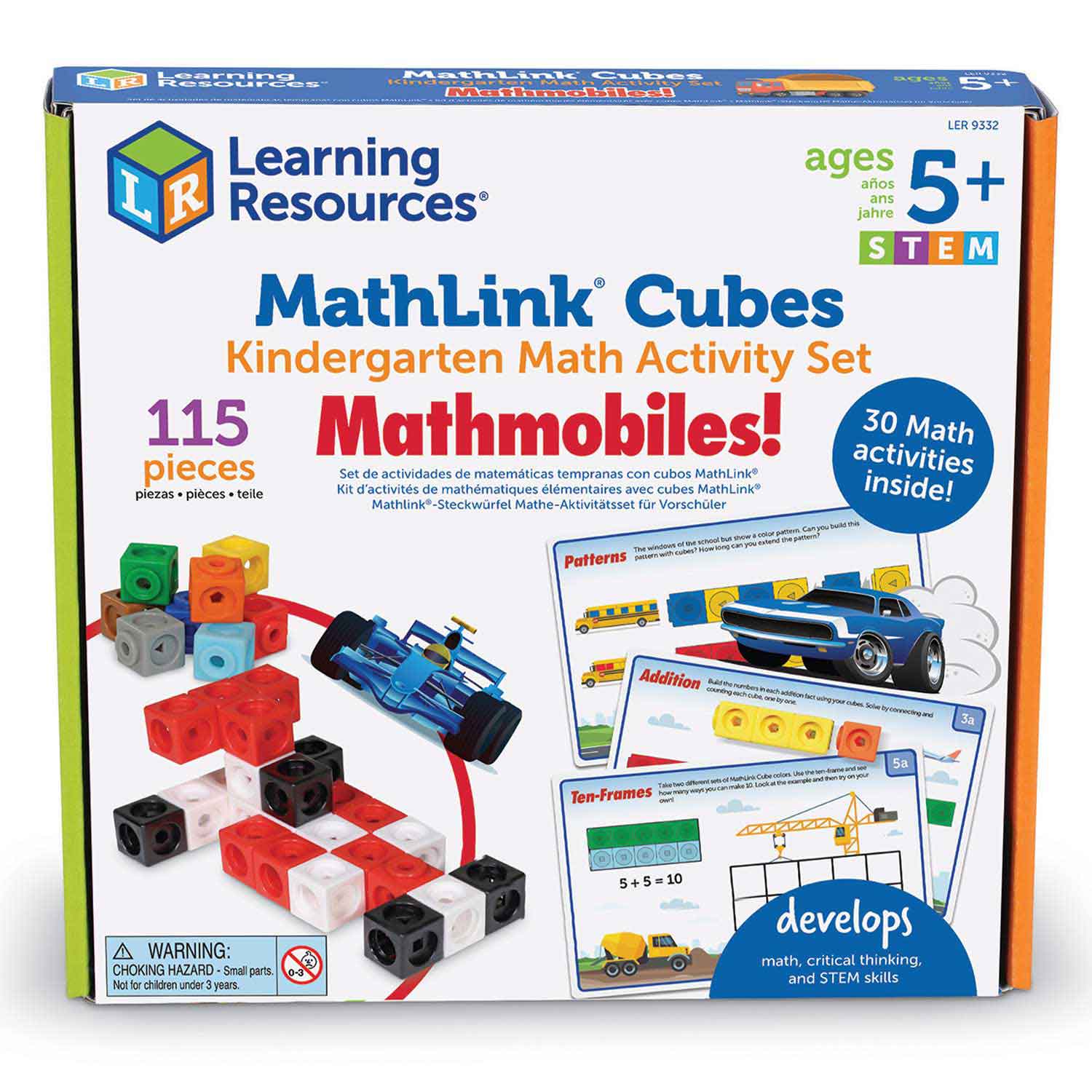 Hit the road to new math skills! Children learn addition, subtraction, sorting, patterning, and other math skills with hands-on puzzles and games. Set includes 100 cubes, 15 write-and-wipe double-sided activity cards, and a reusable storage box.