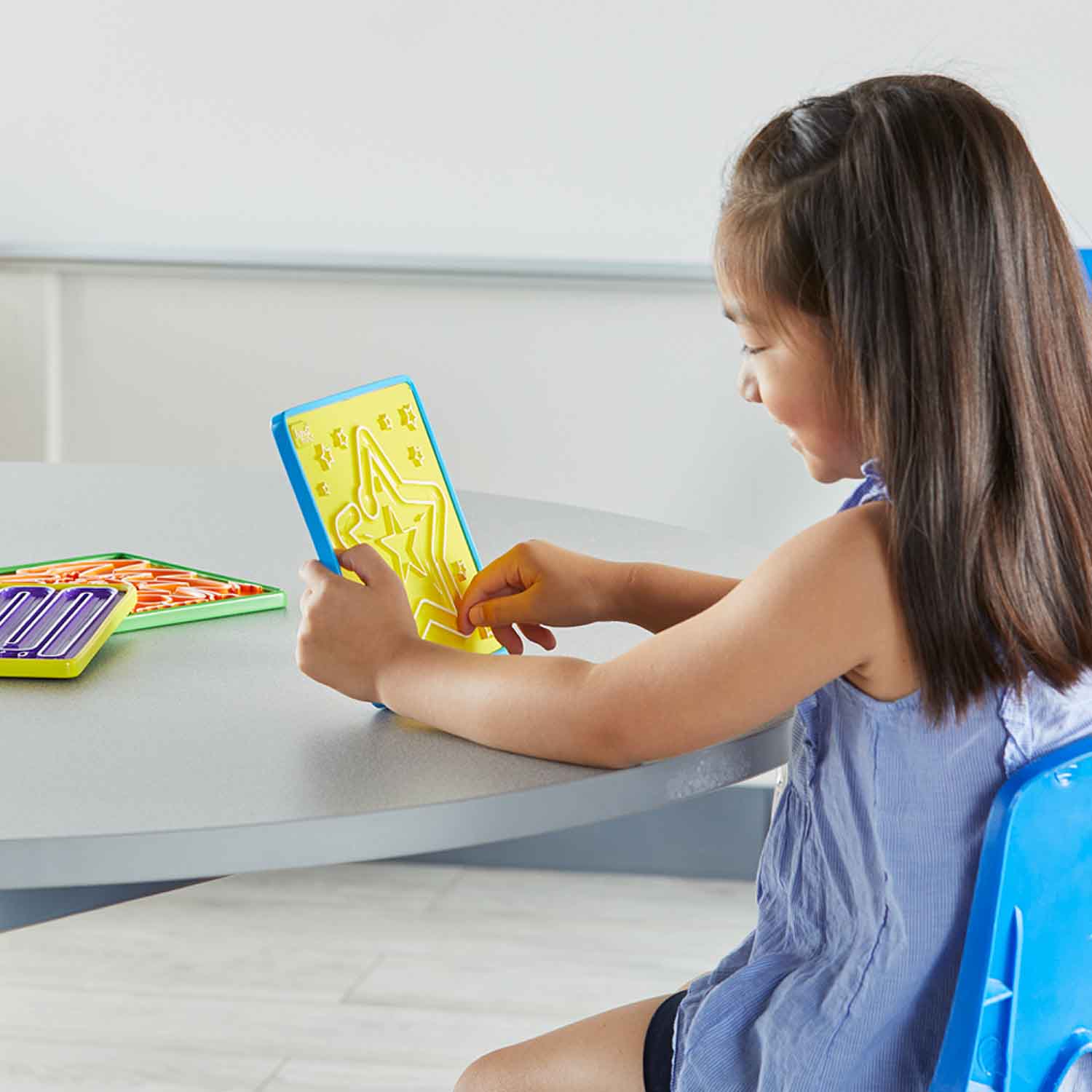 These mazes provide a hands-on, easy-to-use tool to develop self-management skills. The indented finger paths incorporate tactile prompts for inhaling, exhaling, and pausing to guide the child through breathing exercises from start to finish.