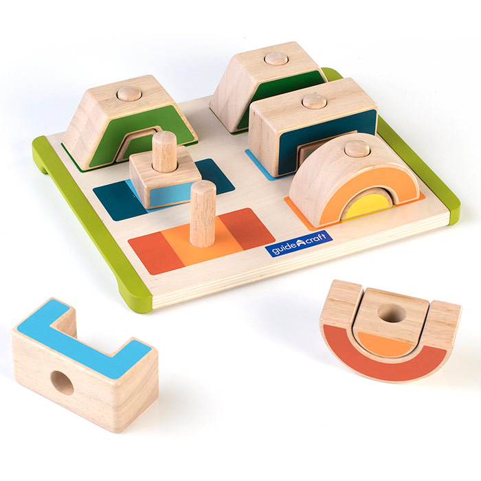 The Mix & Match Stacks set includes colorful rubberwood blocks and a puzzle board for endless activities. Children can mix and match shapes on the pegs to build and sort. Enhance color recognition and matching skills in a fun way with this interactive playset. Durable, bright, and engaging for hours of educational fun.