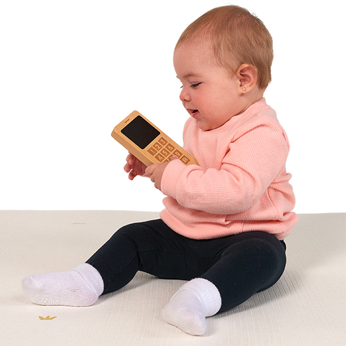 Wooden pretend phones with chalkboard screen and etched numbers.
