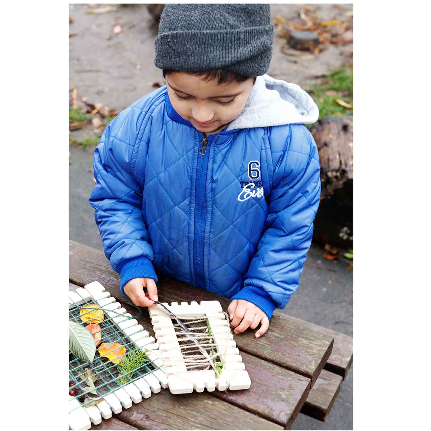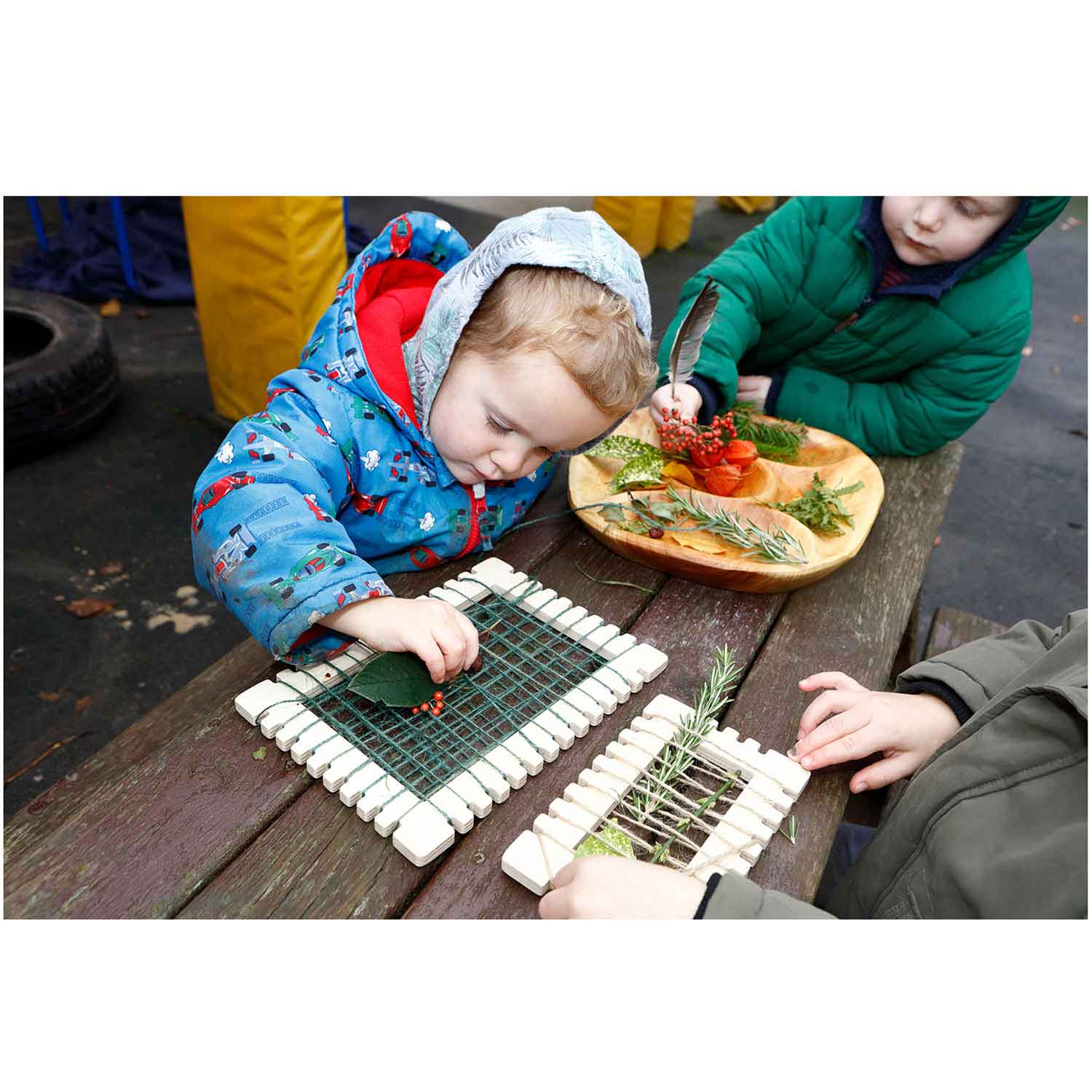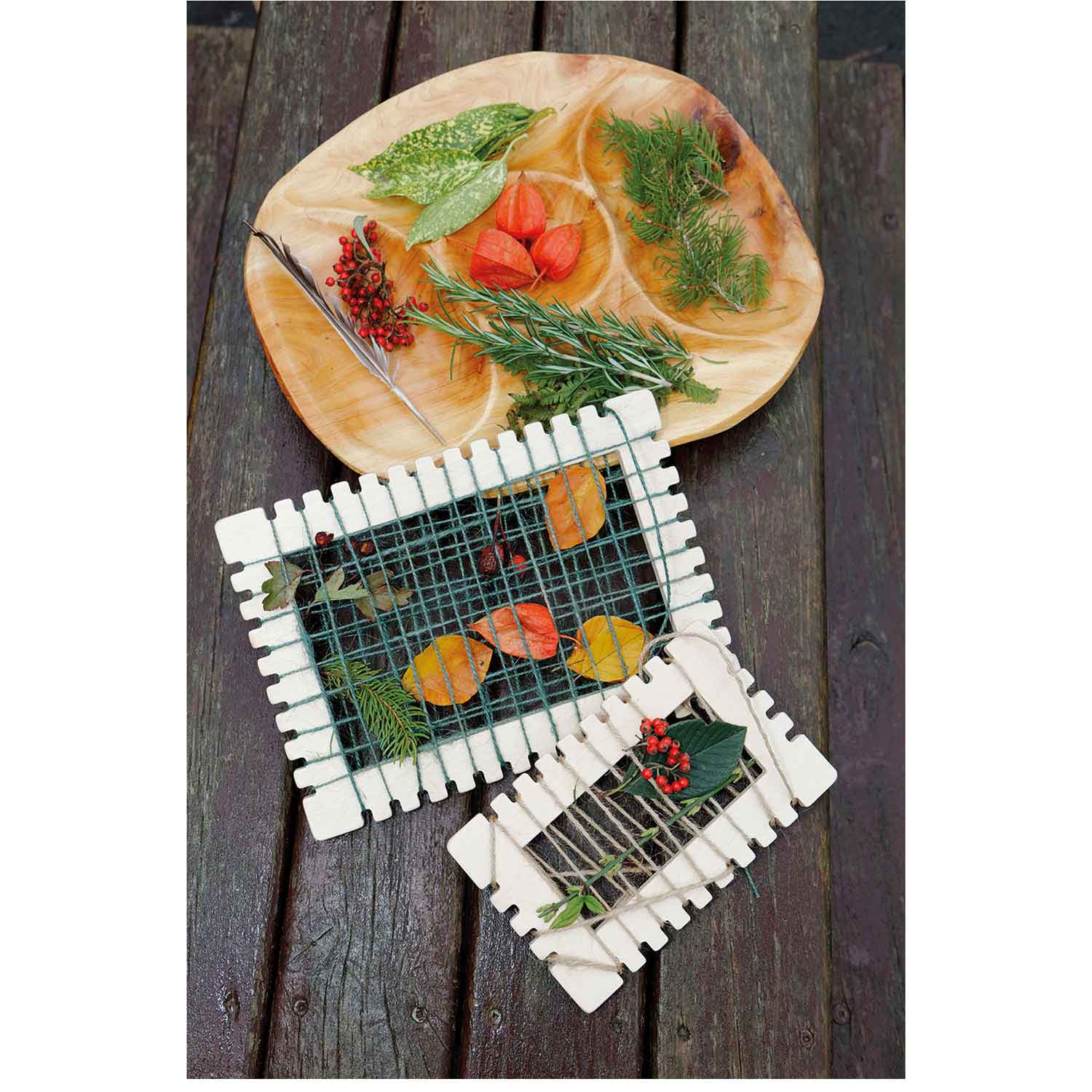 Simply add a variety of wool, ribbons and string to create mini-tapestries of color and texture—use them with natural materials, too! These frames are an enjoyable way for children to practice their fine motor skills.
