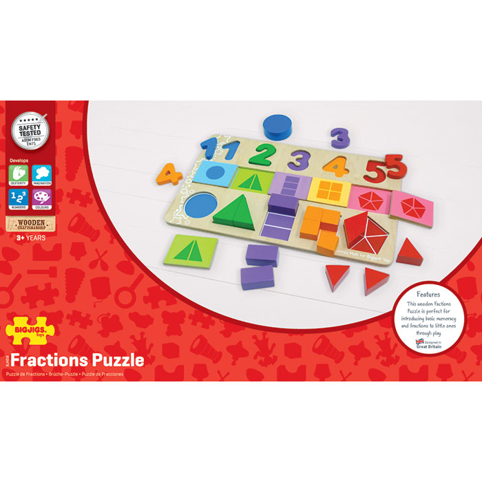 Children match shapes, numbers, and colors while exploring how different parts make a whole. The My First Fractions Puzzle is made with brightly colored wooden pieces, making learning fun and engaging. As children match the shapes to the corresponding numbers and colors on the board, they reinforce their counting skills. This hands-on play will help them develop a deeper understanding of fractions.