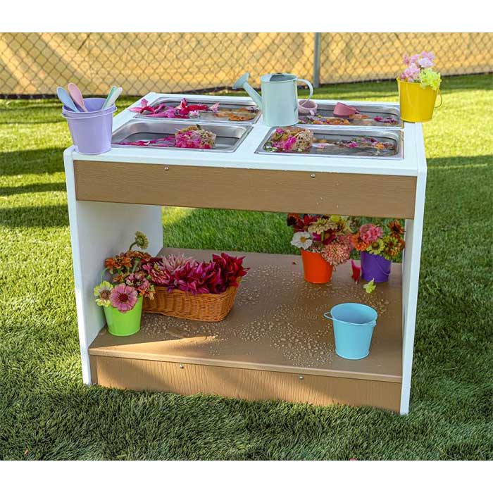 The outdoorED Sensory Table is thoughtfully designed to support hands-on exploration and outdoor learning. With room for up to four children, this table invites young learners to discover and create together. The stainless steel trays and convenient storage shelf help make clean-up simple, so you can focus on what matters most—engaging children in meaningful sensory play. Built with quality and care, this table is a lasting addition to any early childhood environment.