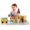 Here’s a new twist to magnetic building! Explore themes, build vocabulary and be STEM-engaged as you add printed design tiles to your buildings. Build 3 distinct sets as shown or make your own creations.