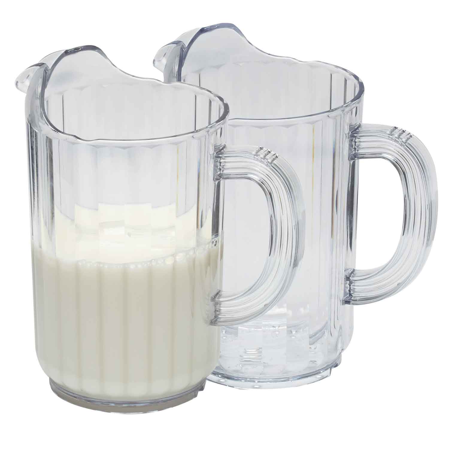 See through plastic pitchers makes pouring easy for children and adults. Break-resistant.