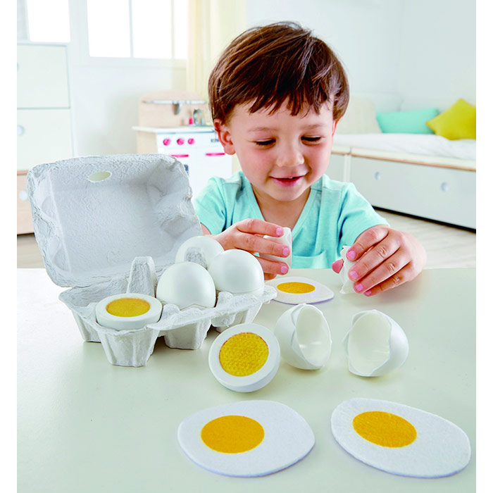 - Includes 6 eggs (3 hard-boiled eggs & 3 fried eggs with yolk and white)