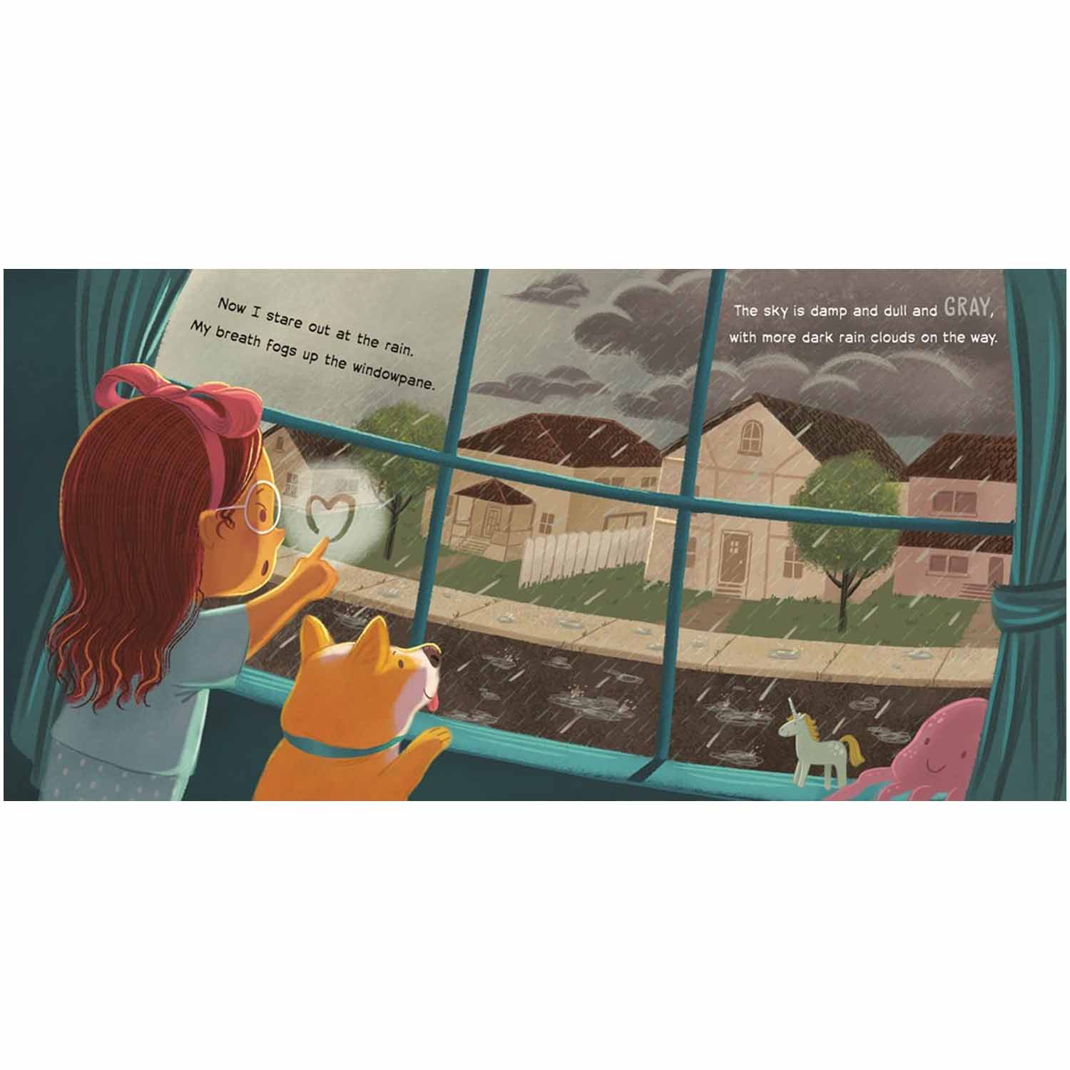 Raindrops are falling outside, but there's still a world of color to experience! Delightful rhymes and brilliant illustrations detail how a gloomy, rainy day might not actually be so gloomy after all when you get to spend time with Mom, Brown Bear, and the colors around you. And when a "beaming rainbow, bold and bright" cuts through the sky, everyone gets to experience the joy of all the colors that can only come after the rain.