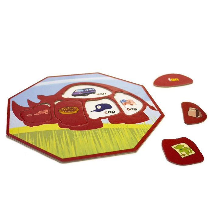 Enhance early literacy skills with Rhymenoceros, the rhyming bingo game. Match objects in the box to rhyming pictures on the rhino puzzle board. Develop phonological awareness and rhyming word recognition in a fun and interactive way.