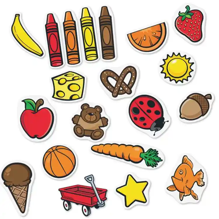 Make a color splash on your whiteboard or magnetic surface! Place the colored objects into the matching "paint cans". Learn colors and pre-math sorting skills. Includes 8 color frames (8” x 10”), 40 magnets and activity guide. Ages 3+