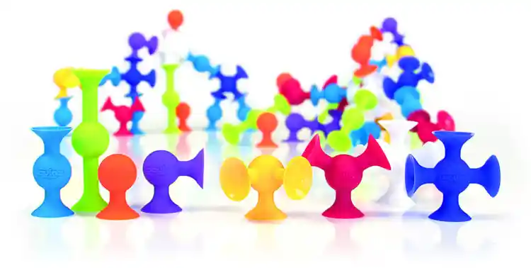 Push them together then POP them apart. Squigz will stick to virtually any surface-with no residue. Using suction construction and a little imagination, they will provide hours of play. Encourages creativity, fine motor skills, interaction, and playful experimentation.