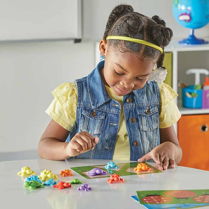 This engaging math activity set provides a sensory experience as children explore counting, sorting, patterning and more. Turtles vary by type, size, color, texture and shape. Includes 36 turtles, 10 double-sided activity cards and an activity guide.