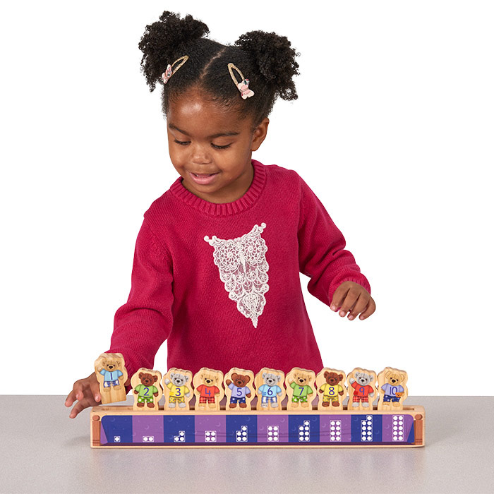 Ten Bears in the Bed is a versatile, double-sided number line that helps develop an understanding of numbers one to ten. The base slot allows children to estimate spatially and order the bears. They will have fun matching numerals to dot patterns while exploring number bonds and creating patterns using the bears’ details.
