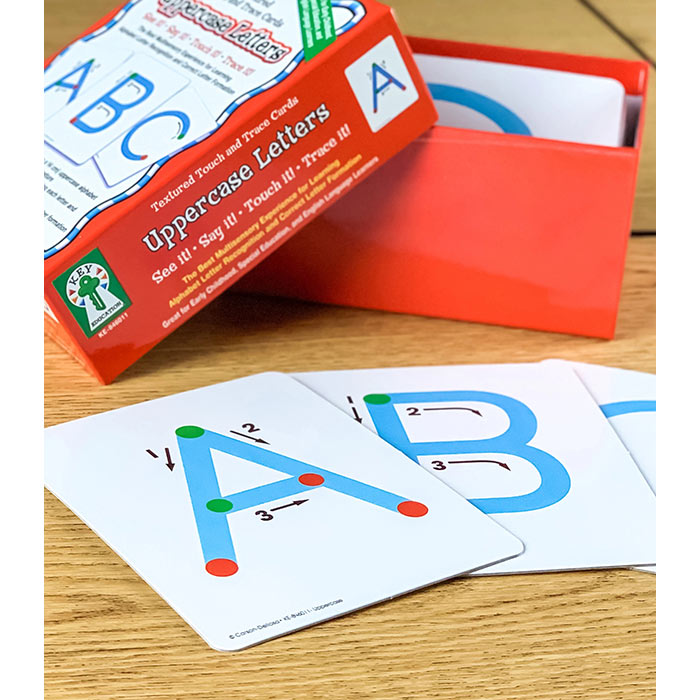 Help students identify uppercase letters and learn to correctly print them. Green dots show where to begin tracing and red dots show where to stop. Directional arrows teach correct letter formation.