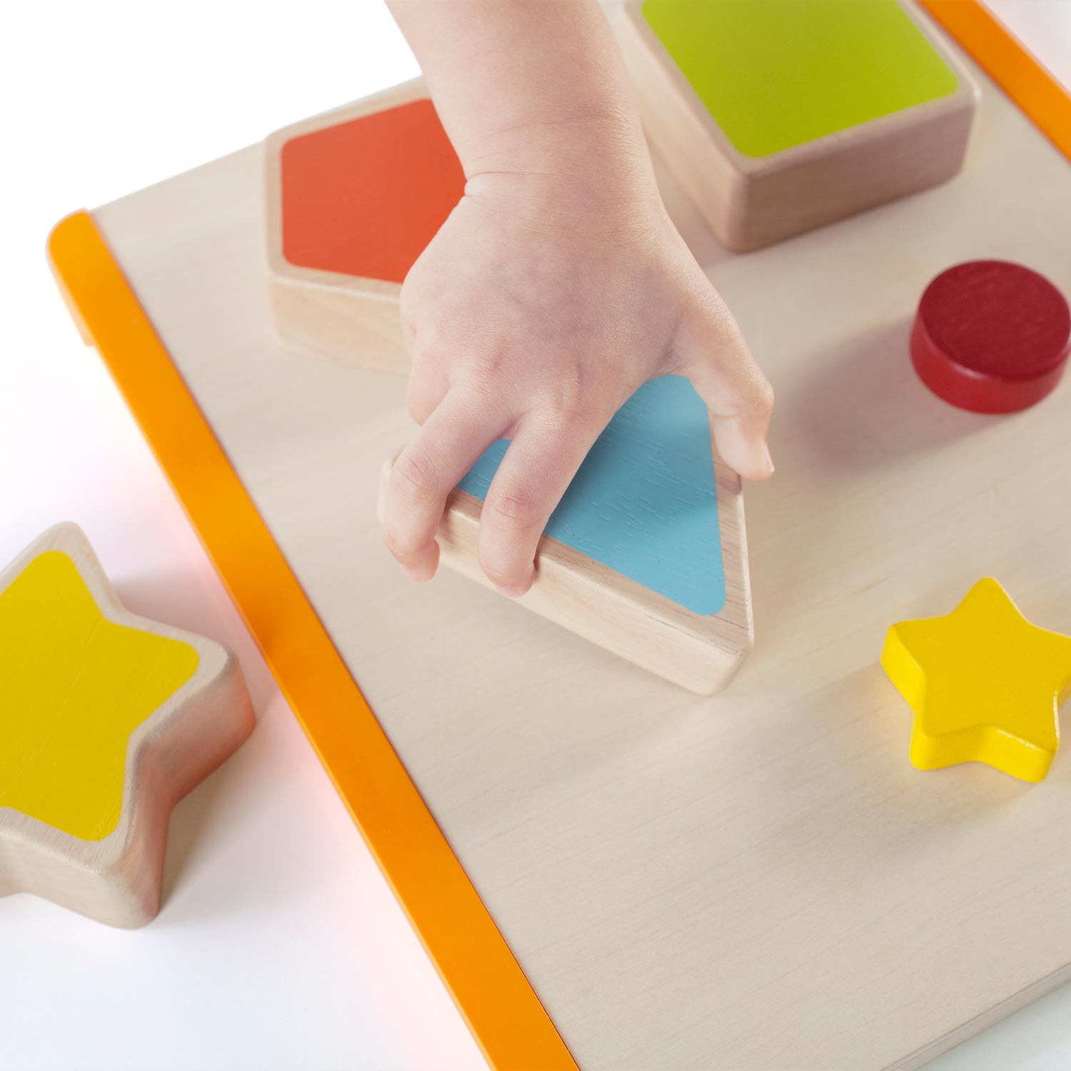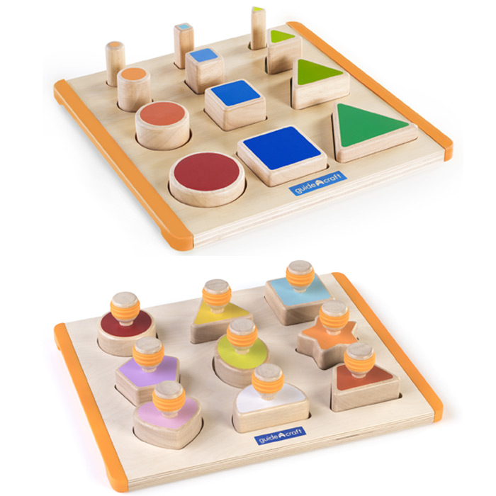These matching shape puzzles provide multiple learning activities to promote fine-motor, hand-eye coordination, and language skills for toddlers and young children. The chunky shapes are easy to grasp and fun to explore with or without the matching puzzle boards.