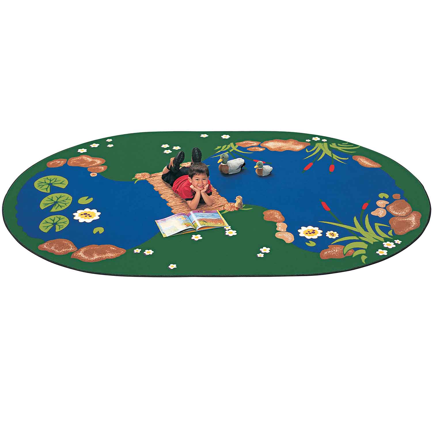 When it’s time to settle down, what could be more soothing than to gather around The Pond? The cool, calming colors and simple, broad design of this classroom rug create the perfect home for story time, quiet time and all your group gatherings.